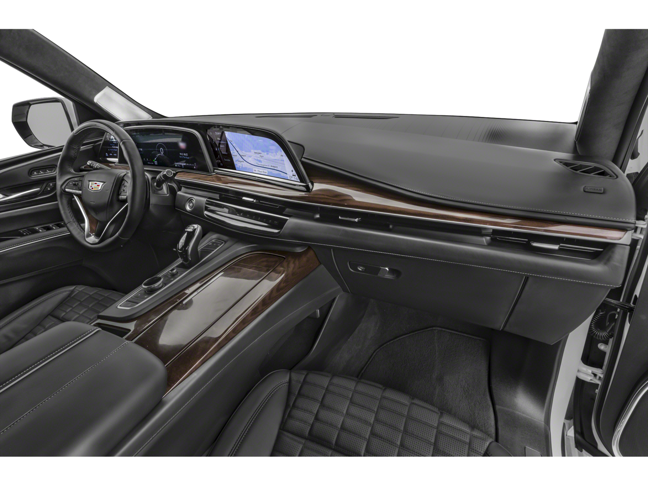 LPO, ONYX PACKAGE includes (SFZ) Monochrome Cadillac emblems, LPO, (RIK) Gloss Black Escalade nameplate, LPO, and (SSX) 22" 12-Spoke Gloss Black finish alloy wheels, LPO (Includes wheel locks. SUPER CRUISE a hands-free driver assistance system for use on compatible roads (Beginning with start of production through October 2, 2022, vehicles will be forced to include either (00U) Not Equipped with Super Cruise and/or (02O) Not Equipped with Super Cruise, which will remove Super Cruise and its content. See dealer for details or the window label for the features on a specific vehicle. Always pay attention while driving and when using Super Cruise. Do not use a hand-held device. Visit cadillac.com/supercruise for compatible roads and full details.), NIGHT VISION, ASSIST STEPS, POWER-RETRACTABLE WITH PERIMETER LIGHTING, CONSOLE REFRIGERATOR freezer mode, covered storage, large and small storage bins, dual cup holders, second row electronic climate and heated seat controls. Also includes auxiliary power outlet, USB A/C ports and 110-volt outlet, HEAVY-DUTY TRAILERING PACKAGE includes (TRO) Auxiliary trailer camera, LPO, (NQH) 2-speed electronic transfer case, (PTT) Trailer Tire Pressure Monitoring System, (THS) Trailering Assist Guidelines and (V03) extra capacity cooling system, LPO, FLOOR LINER PACKAGE includes (CAV) All-Weather integrated cargo liner, LPO and (RIB) All-Weather Floor Liner Package, 1st, 2nd and 3rd rows, LPO, OLED INFOTAINMENT EXPERIENCE WITH NAVIGATION AM/FM/SiriusXM with 360L with 16.9" diagonal color information display (displays and controls navigation, music and all features and functions of the vehicle), personalized profiles for each driver's settings, Natural Voice Recognition, Phone Integration for Wireless Apple CarPlay®/Wireless Android Auto® capability for compatible phone, Connected Apps and Teen Driver (STD), ENGINE, 6.2L V8 WITH DYNAMIC FUEL MANAGEMENT Direct Injection and Variable Valve Timing, includes aluminum block construction (420 hp [313.2 kW] @ 5600 rpm