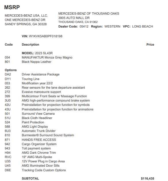 - Vehicle Name: Mercedes-Benz SL