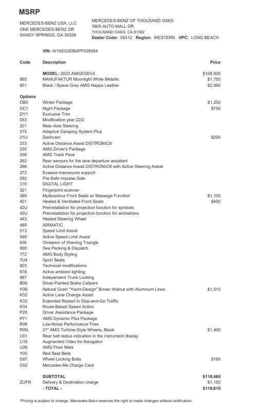 NATURAL GRAIN YACHT DESIGN WALNUT WOOD TRIM, WHEELS: 21 AMG® MULTISPOKE TURBINE BLACK Tires: 265/35R21 Front & 295/30R21 Rear, WINTER PACKAGE Heated Rear Seats, Heated Windshield, Heated Windscreen Washer System, ACTIVE MULTICONTOUR FRONT SEATS W/MASSAGE FEATURE, AMG® NIGHT PACKAGE Omission of Dark Tinted Glass, US regulatory requirement, Black Spoiler, HEATED & VENTILATED FRONT SEATS, Navigation, Panoramic Roof, Automatic Full-Time All-Wheel, Power Liftgate, Back-Up Camera Mercedes-Benz of Thousand Oaks is your local Mercedes-Benz dealership, serving the Thousand Oaks and Los Angeles Metro area since 1982. Our showroom always includes the most current luxurious and sophisticated Mercedes-Benz models. Were only a short trip from many communities, including Malibu and Simi Valley, and our team is happy to provide sales, financing, and automotive service and repair on site.