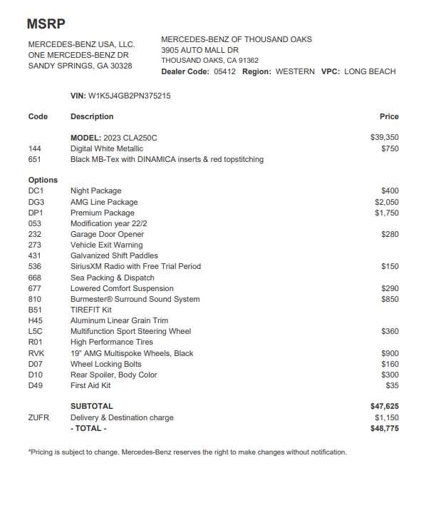 - Vehicle Name: Mercedes-Benz CLA