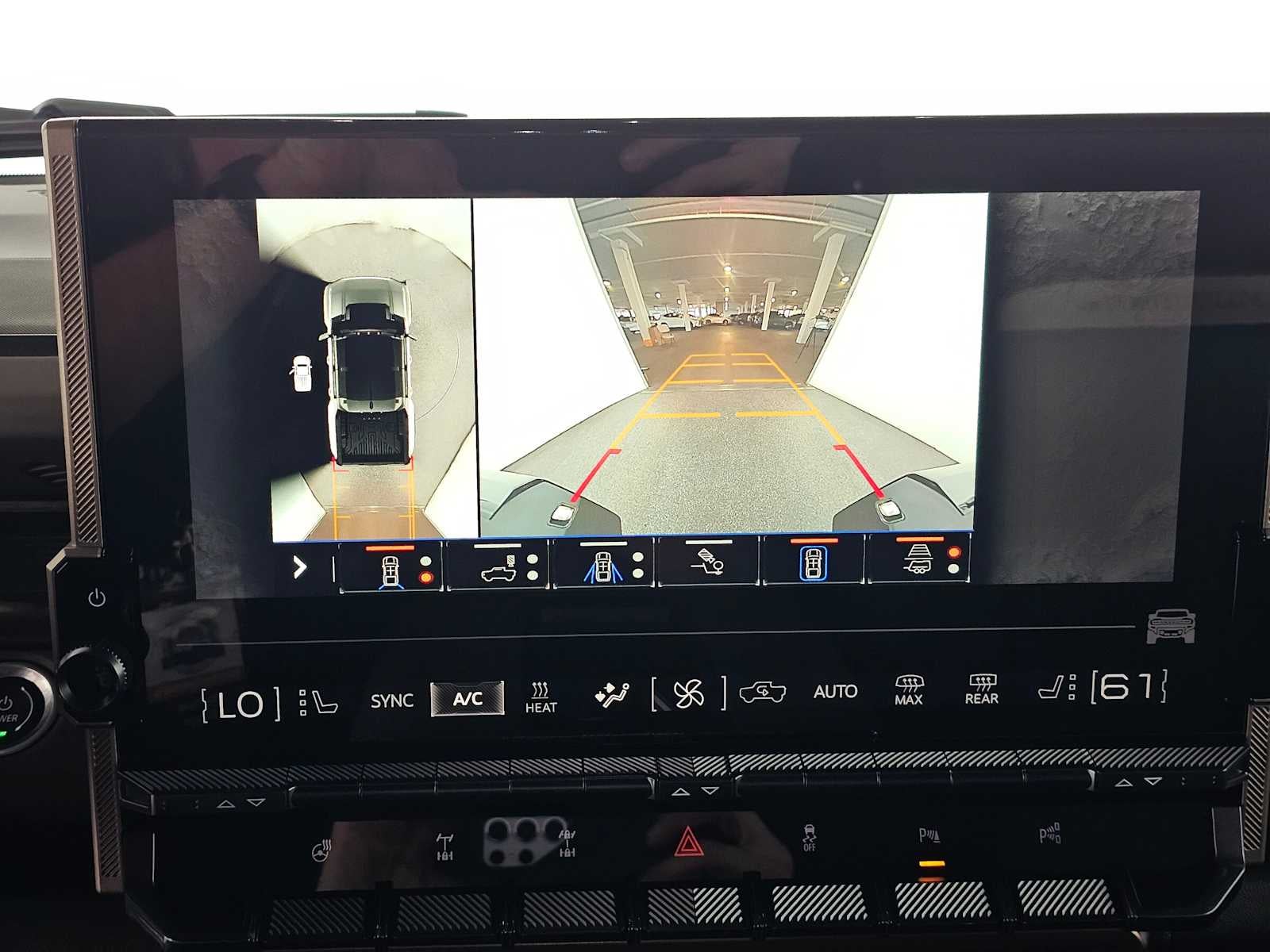 - Allows driver to see inside the cargo bed on the infotainment display to help with 5th wheel or gooseneck hitching and to check cargo