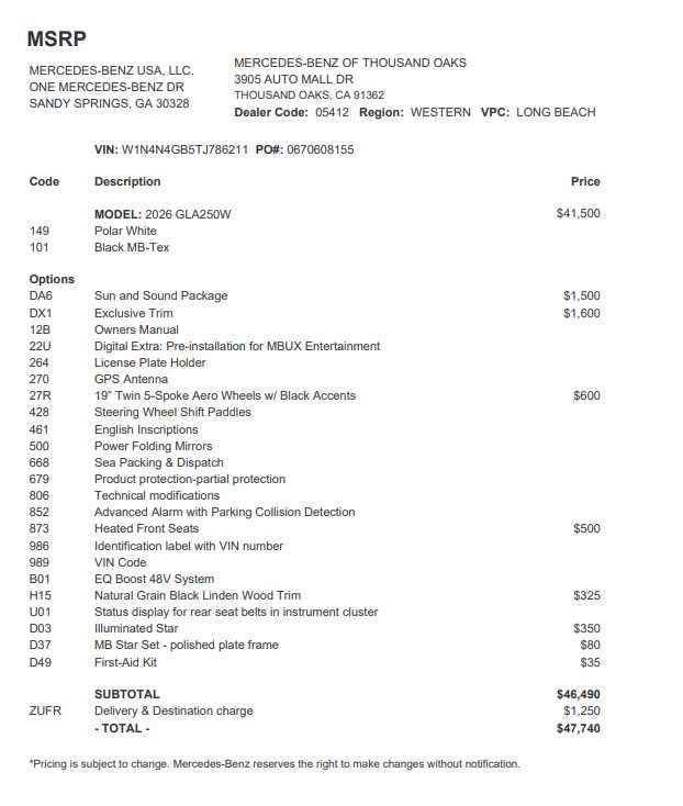 - Vehicle Name: Mercedes-Benz GLA
